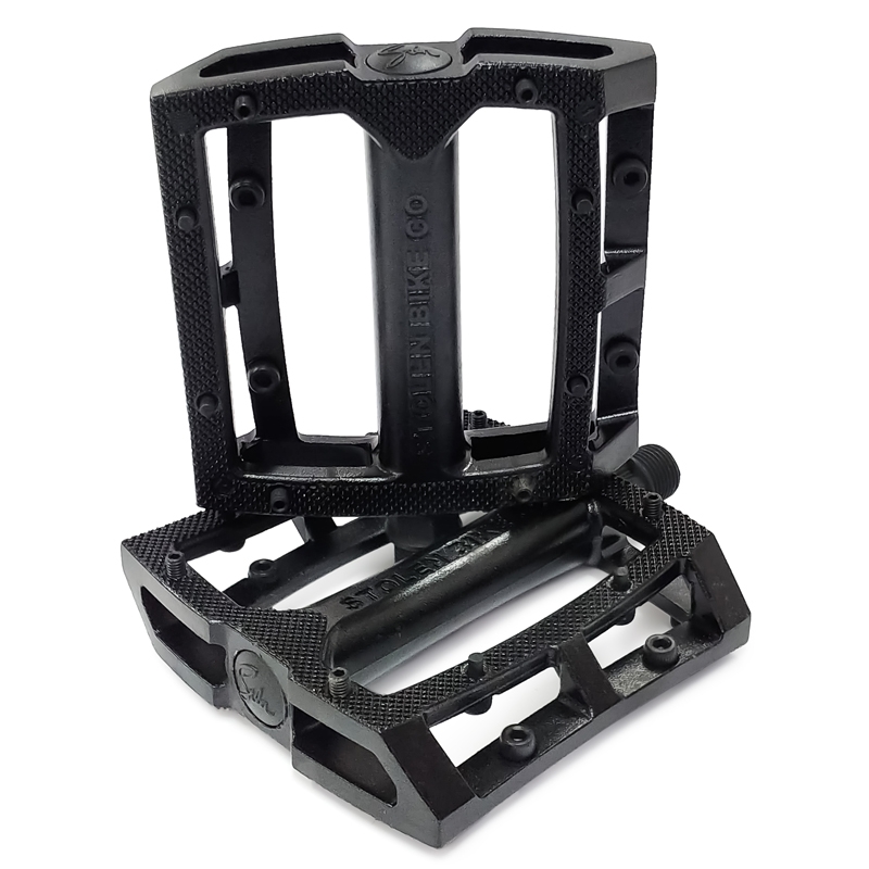 Large platform with a knurled concave shape. Low profile die cast aluminum body with 8 replaceable steel pins per side. Recessed end to prevent damage to bearing cover.