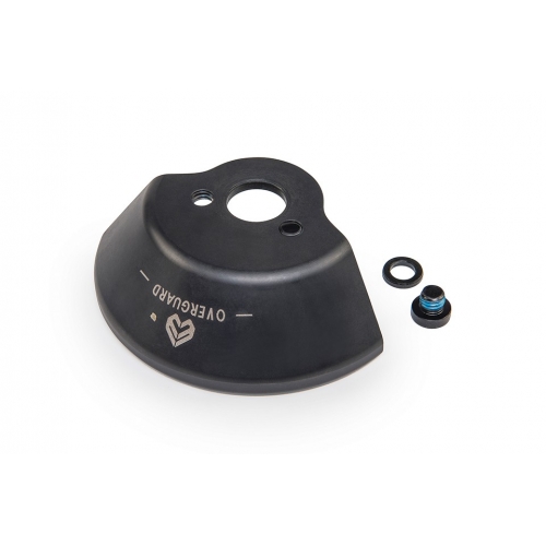 The Overguard is a universal drive-side hub guard. Fully CNC machined out of heat treated 4140 chromoly this guard uses a unique design that allows the guard to fit to pretty much every hub/frame/peg on the market. The advantage of using Chromoly for the Overguard is that it?s super strong, slides like butter and wont break the bank either. The Overguard sits between the peg and the dropout and then over your chain, or on the non-drive side, so you can actually run two of these for the ultimate guard setup.